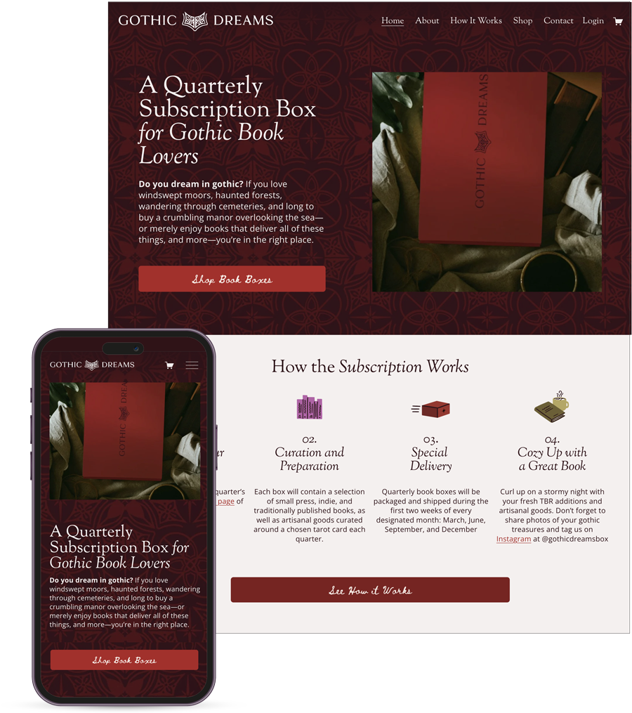 Gothic Dreams is a quarterly book box subscription service curated by bestselling author Paulette Kennedy, delivering a trio of carefully selected gothic horror and suspense novels to the doorsteps of gothic fiction fans every three months, along with handcrafted artisanal goods.